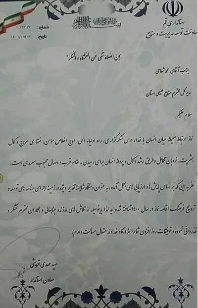 از اداره کل منابع طبیعی و آبخیزداری استان قم در حوزه نماز تجلیل شد