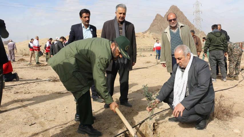 فرمانده پایگاه بسیج با اشاره به تفاهم نامه ی سپاه و بسیج با منابع طبیعی کشور در راستای اجرای طرح مردمی کاشت یک میلیارد درخت و عمل به دستور مقام معظم رهبری که فرمودند هر ایرانی سه نهال بکارد، اظهار داشت: امروز کارمندان بسیجی پای آمدند و نهال زیتون را به یاد شهدا کاشتند.