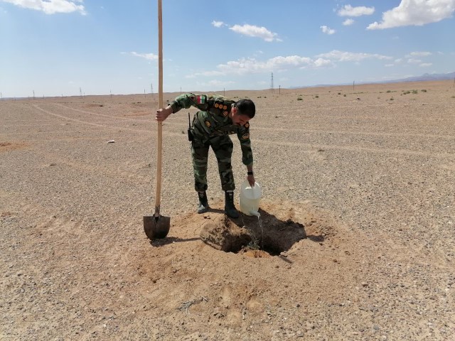 وی در ادامه با تاکید بر استفاده از گونه های بومی منطقه برای توسعه ی پوشش گیاهی گفت: گونه ی تاغ و آتریپلکس که در این منطقه کاشته شده، جزو گونه های مقاوم و مناسب مناطق بیابانی است.