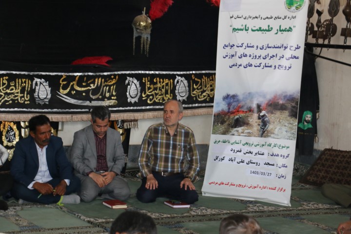 به گزارش روابط عمومی اداره کل منابع طبیعی و آبخیزداری استان قم، حمیدرضا زمانی رئیس اداره آموزش، ترویج و مشارکت های مردمی از برگزاری کارگاه آموزشی ترویجی آشنایی با اطفاء حریق، مدیریت چرا و همیار طبیعت برای عشایر قمرود خبر داد و گفت: با حضور بیش از 40 نفر از عشایر روستاهای علی آباد کورگل ، مشک آباد ، جعفرآباد و صید آباد بخش قمرود این کارگاه برگزارگردید.