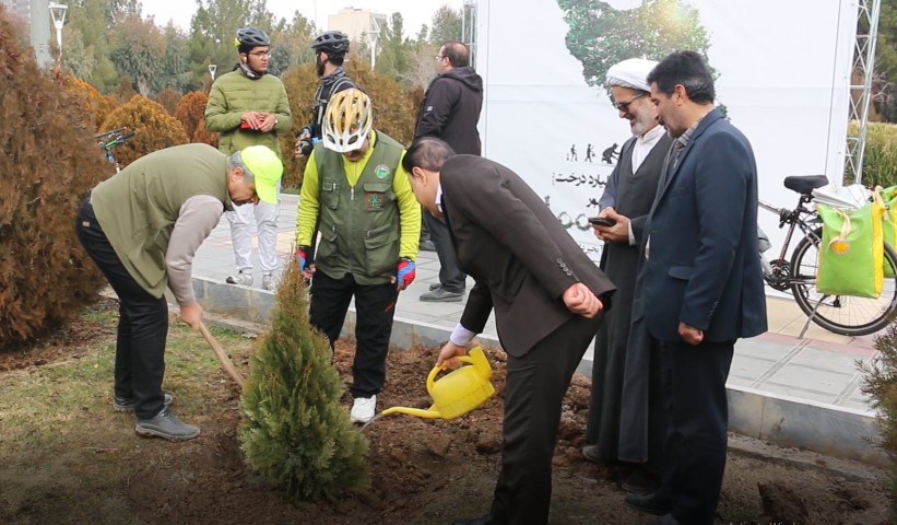 کاشت نهال توسط دوچرخه سوار همیار طبیعت و سفیر طرح مردمی کاشت یک میلیارد درخت